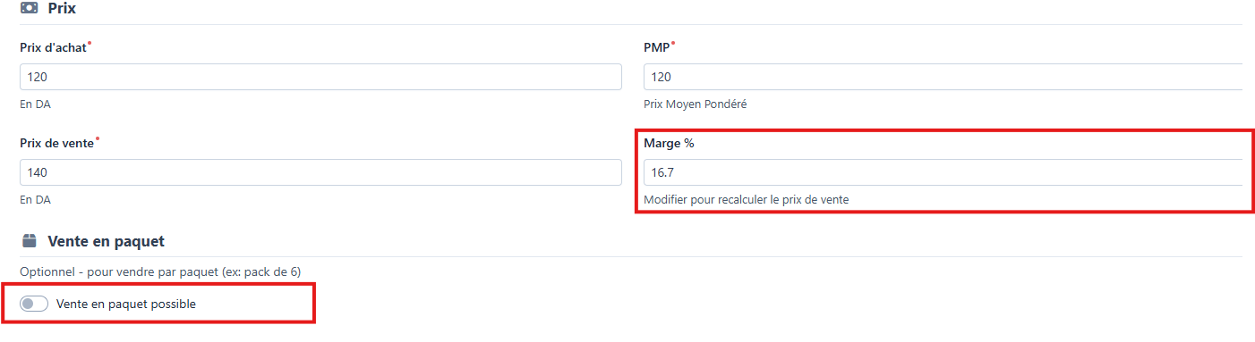Le bouton "Vente par paquet" se désactive quand on modifie le stock: